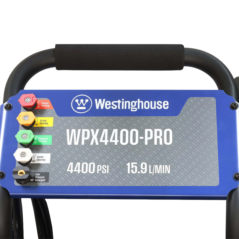 The new WPX4400-PRO delivers the highest cleaning energy of any pressure washer in the Westinghouse commercial-grade range. The powerful 420 cc petrol engine, heavy-duty Triplex brass head pump and durable steel wire reinforced pressure hose can tackle the biggest worksite cleaning jobs in the shortest amount of time to save your business both money and water.